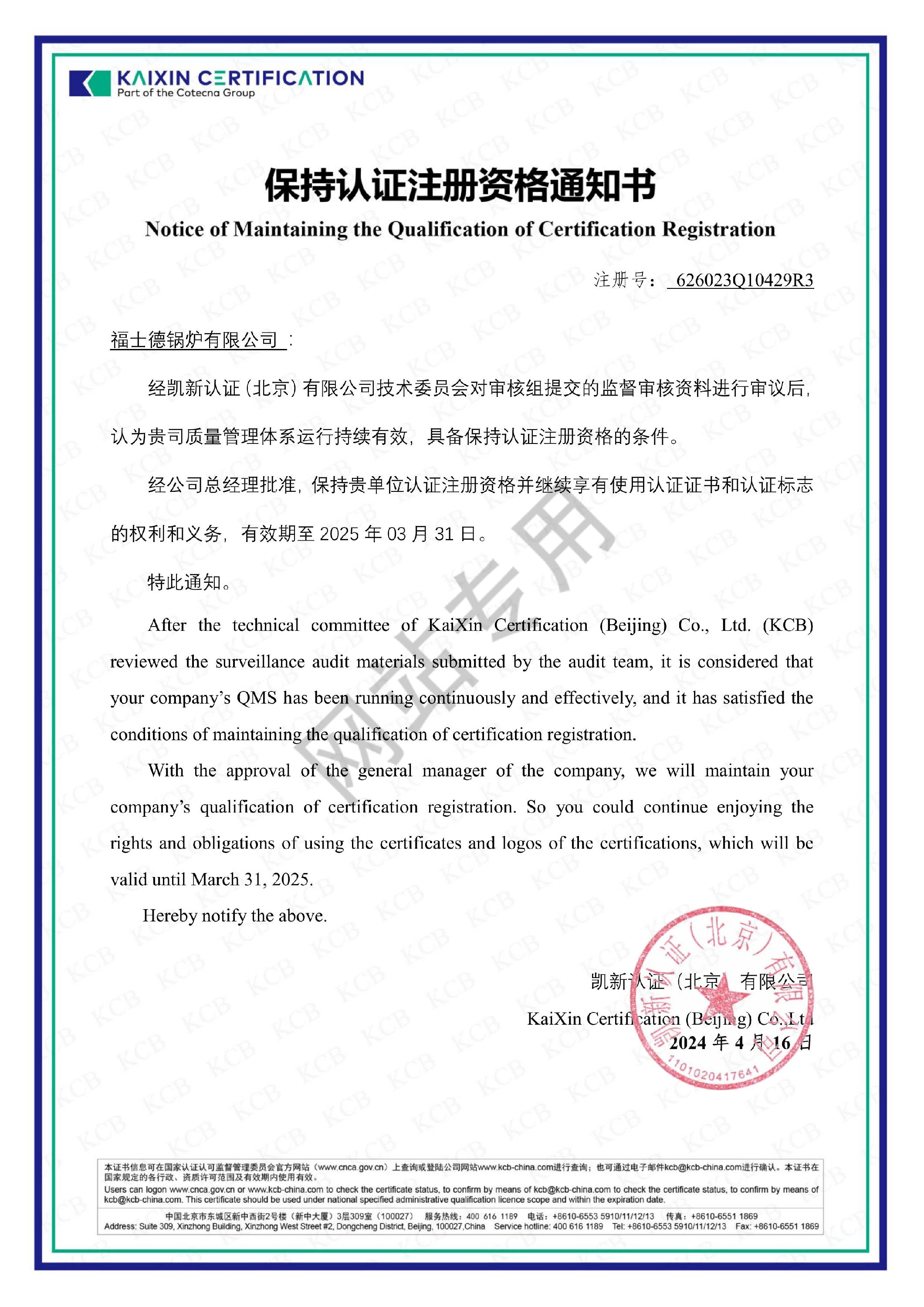 2025年11月4日、5日,特種設備鑒定評審組專家在福士德鍋爐有限公司開展A級鍋爐安裝(含修理、改造)許可換證評審工作。在為期兩天的評審中,我們高度重視、全力配合,全面展示了企業..